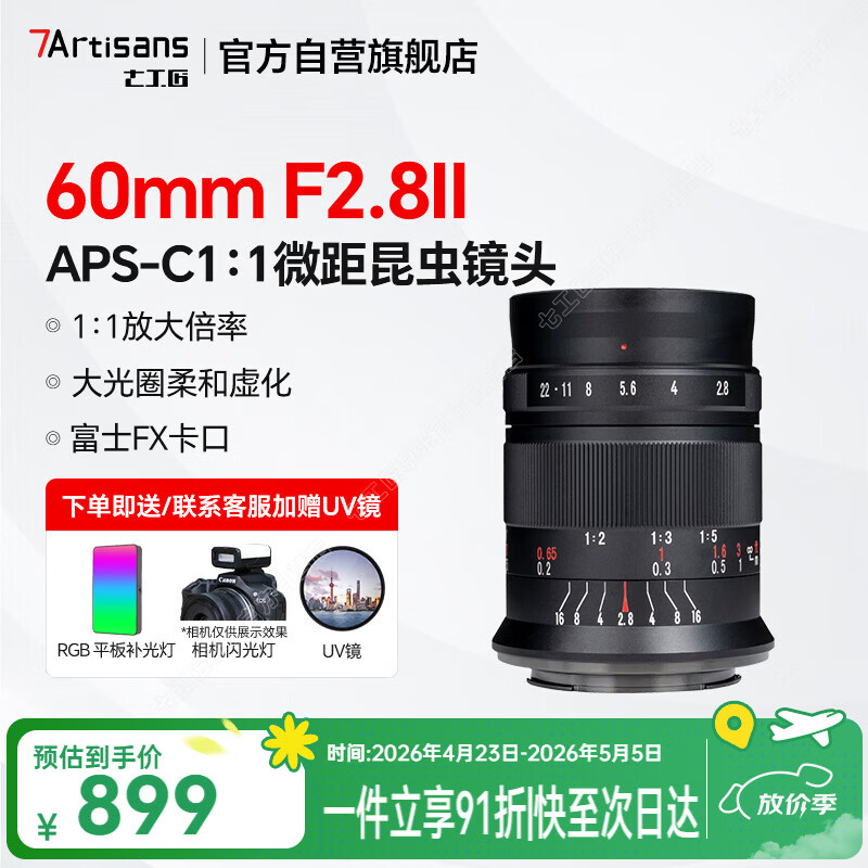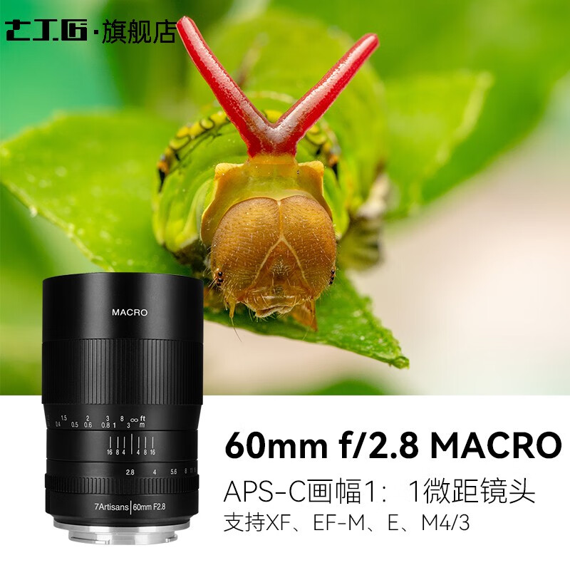 七工匠 60mm F2.8 1:1倍超微距半画幅镜头 昆虫花卉适用于E口FX R Z M43 富士X口