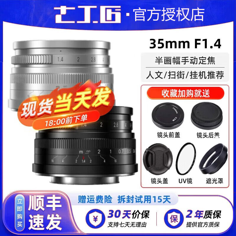 七工匠35mm f1.4 人像大光圈小痰盂镜头 35f1.4半画幅人文扫街手动定焦适用于E/X/Z/M43卡口微单相机 黑色(微单手动镜头) 佳能RF卡口