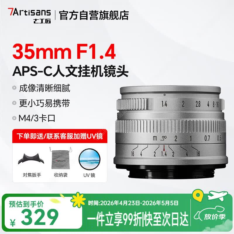 七工匠松下奥林巴斯m43卡口定焦镜头 银色 35mm f1.4人像半画幅微单相机镜头手动大光圈