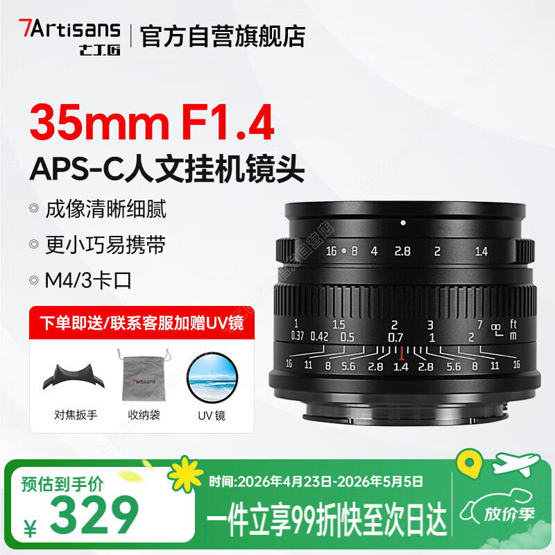 七工匠松下奥林巴斯m43卡口定焦镜头 黑色 35mm f1.4人像半画幅微单相机镜头手动大光圈