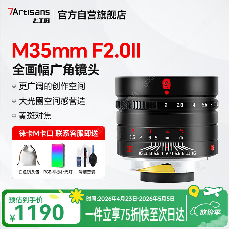 七工匠徕卡相机定焦镜头旁轴M卡口 黑色 M35mm F2.0大光圈风景人像定焦全画幅手动对焦镜头人文系列