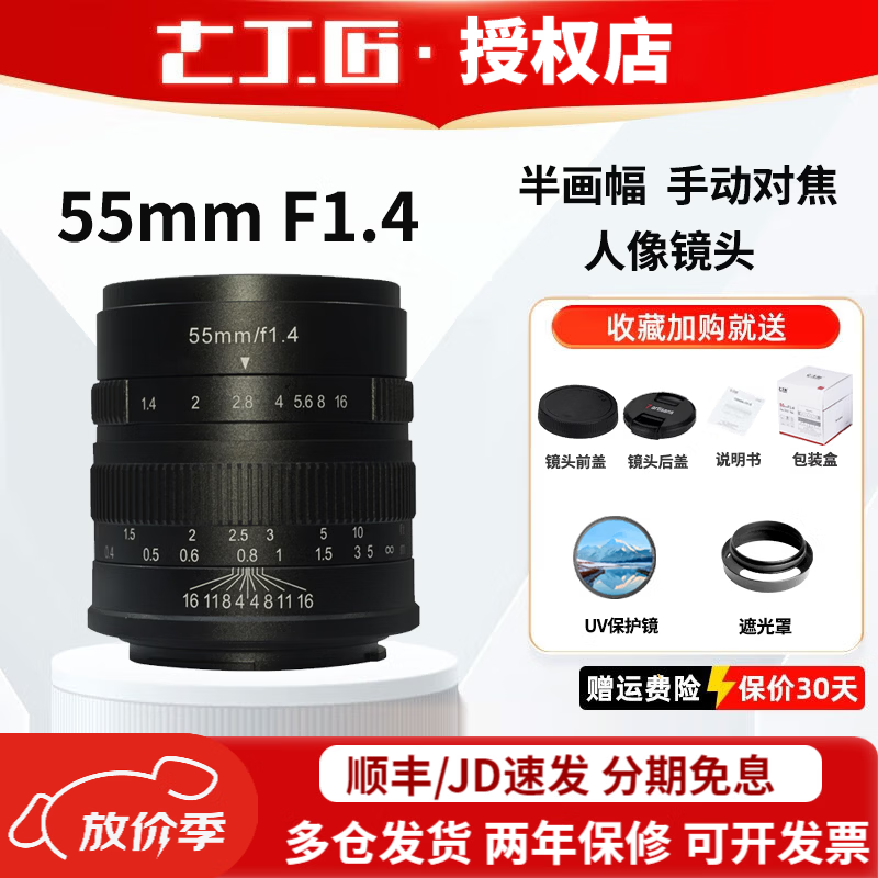 七工匠55mm f1.4大光圈微单定焦人文镜头索尼e卡口手动人像镜头xs10 A6400 55mm F1.4一代 富士口(富士微单系列)发JD/顺丰