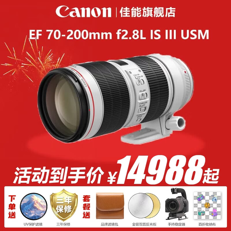 佳能(Canon) EF 70-200mm f2.8 L IS 三代单反镜头6D2 5D4 90D 官方标配+【佳能原装UV镜片+五合一清洁套装】 .