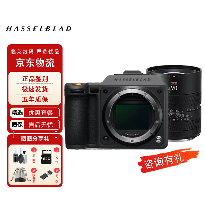 哈苏(HASSELBLAD)X2D 100 中画幅无反相机5轴机身防抖自动对焦1亿像素 1TB内置存储 X2D II 100C+XCD90V F2.5 全新正品未拆封