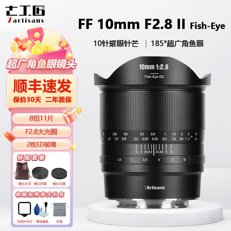 七工匠 10mm f2.8全画幅鱼眼镜头9mm 15mm超广角S5 A7M4 A7R3 R5 Z5 Z6 Z50II代 R6 R8微单相机风光镜头 10mmF2.8II(二代鱼眼镜头) L卡口(适用徕卡/适马/松下)