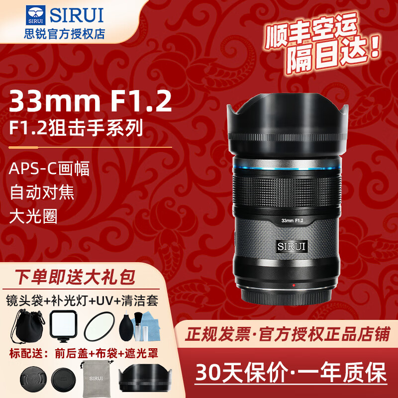 思锐狙击手系列16 23 33 56 75mm F1.2自动对焦镜头超广角大光圈半画幅人像定焦镜头微单适用X/E卡口 33mm F1.2【黑色碳纤维版】 索尼E口