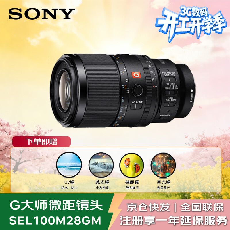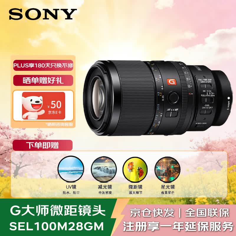 索尼(SONY)SEL100M28GM 全画幅F2.8大光圈微距G大师镜头( FE 100mm F2.8 Macro GM OSS 滤镜防护套装)