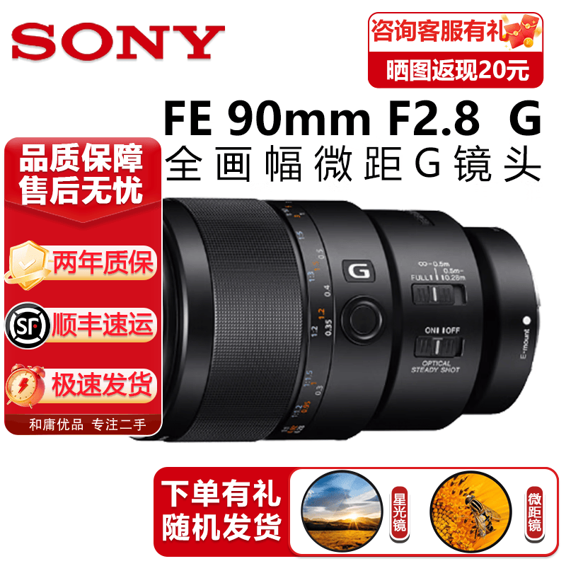 索尼(SONY)Sony/索尼FE 90M28G 100F2.8GM 50F2.8 30F3.5 二手镜头 微单镜头 FE 90mm F2.8 微距 G OSS 99新