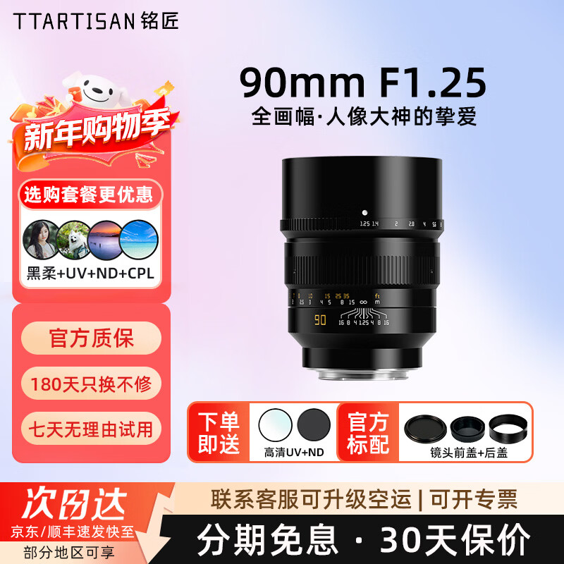 铭匠【咨询有礼】90mm F1.25全画幅大光圈适用GFX100S 50RF X1D X2D人像镜头手动定焦铭匠光学镜头 黑色(赠送大礼包) 富士GFX卡口(适用富士GFX中画幅微单)