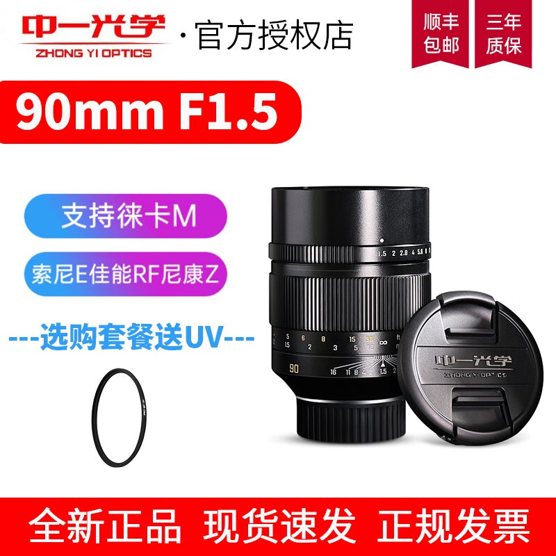中一(zhongyi) 中一光学90mm F1.5全画幅微单人文旅拍适用于M\RF\FE\Z\L口 索尼FE黑色 标配
